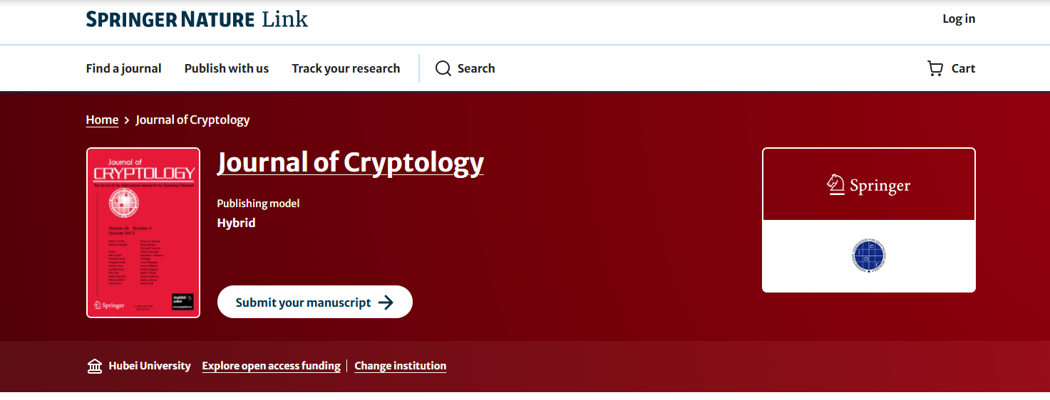 近日,公司密码学团队涂自然、曾祥勇、李念三位教授和挪威卑尔根大学Chunlei Li教授、挪威科公司院士Tor Helleseth教授,在《Journal of Cryptology》(JoC)联合发表科研论文《New Characterizations of Dillon-like Hyperbent Functions via Dickson Polynomials》。这是湖北学者首次在JoC发表论文,bevictor伟德为第一单位,涂自然教授为第一作者,曾祥勇教授为通讯作者。