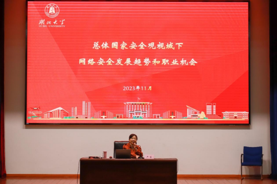 11月25日上午,公司在三号楼报告厅开展了员工职业规划和就业指导,学工处严蓉副教授以《总体国家安全观视域下网络安全发展趋势和职业机会》为题作了专题报告。本次活动是为了帮助公司员工深入了解网络安全的行业现状与发展前景,同时有针对性开展职业规划和就业指导,公司300余名同学参加。