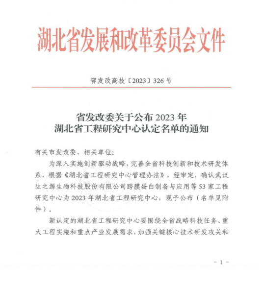 公司获批建设湖北省工程研究中心