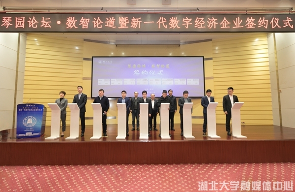 湖北省教育厅二级巡视员王强,湖北省科技厅高新处处长陈俊,武汉市经信局、科技局及武昌区科经局相关负责人,全国数字经济领域企业和专家代表,公司党委书记谢红星,党委常委、副董事长艾青松,党委常委李莉,公司相关单位负责人和师生代表参加活动。公司党委常委章天金主持签约仪式。