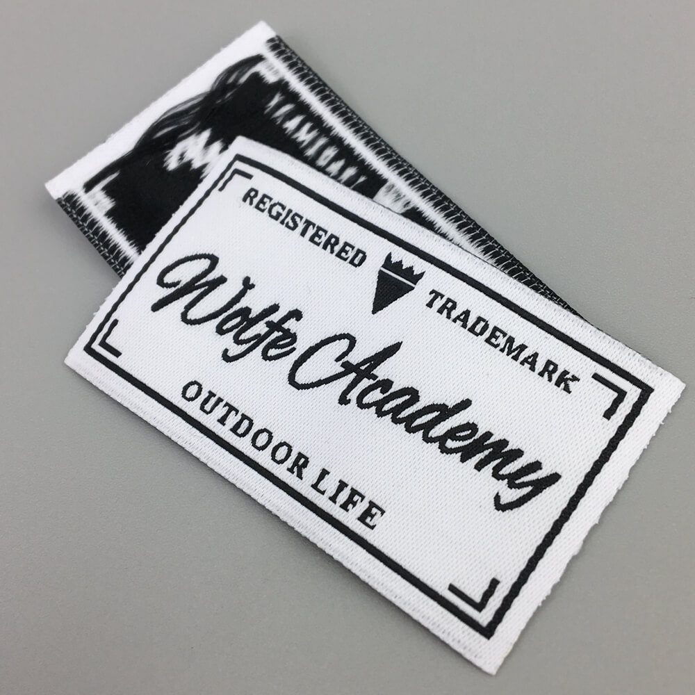 Woven labels are made of 100% polyester threads woven together on a loom to create your text and/or artwork into a piece of material. Even the background of your label is woven threads alongside the logo design.